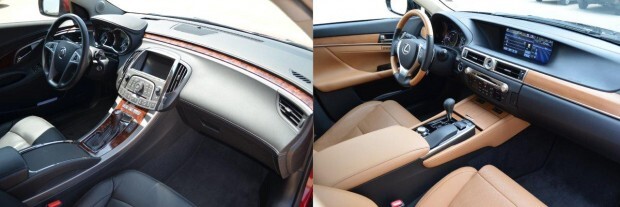 Granted, the LaCrosse accepts regular unleaded fuel while the GS sips premium, but still, 21.8 MPG for any four-cylinder vehicle is awful. 2012 Buick LaCrosse eAssist vs. 2013 Lexus GS450h Point: Lexus.