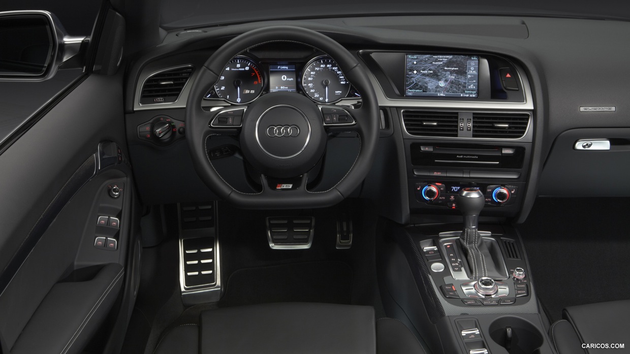 And now we come to the most controversial update on the 2013 S5 coupe. You will no longer find the high revving 4.2 liter V8 under that long hood. Instead, there is the now familiar 3.0 liter supercharged V6. What is the tradeoff? Basically, you are trading the visceral V8 soundtrack for better fuel economy and consistency of a blown engine. That being said, this V6 is one of the best sounding that I have tried. Even better than in Infiniti G37x. Also, you can fine tune the exhaust sound via valving, which is controlled with the Audi Drive Select.