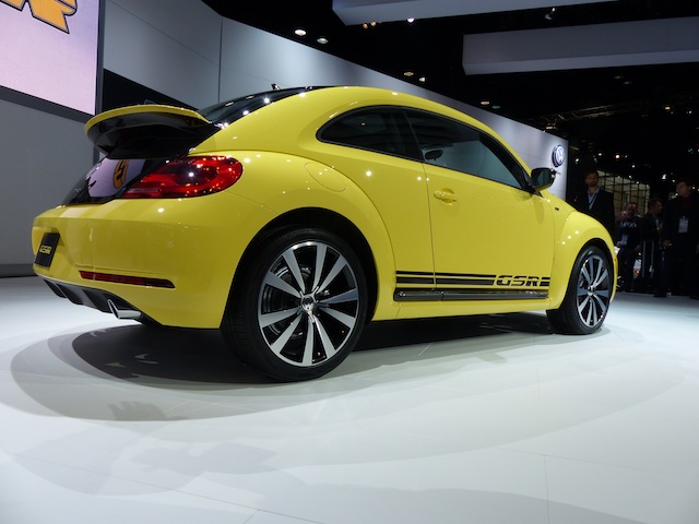 The new, limited-edition 2014 Volkswagen Beetle GSR debuted at the Chicago Auto Show with a distinctive yellow and black paint scheme that is sure to make Bumblebee jealous. With a production run of just 3500 units worldwide, this sporty version of the Beetle harkens back to the GSR (Gelb Schwarzer Renner or “Yellow Black Racer”) introduced forty years ago.