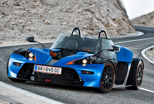 The KTM X-Bow GT, fitted with a full-width windshield, a 281 hp Audi engine and a lightweight carbon-fiber monocoque chassis, serves as KTM’s “commuter” car.