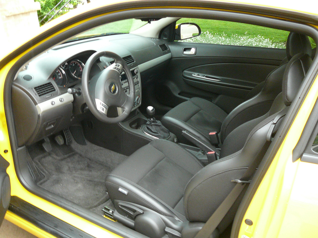 The Cobalt SS comes with many performance oriented goodies. Of course, motor is the start of the show. It revs quickly and exhales with great sporty sound out the single rear exhaust. You also get a limited slip differential to keep both front wheels biting. The 5-speed manual transmission is not the best in the business, but does the job very well. It comes with “no-lift shift” capability to speed up gear changes and increase the fun factor. There is also “competitive mode launch control” that allows for more consistent acceleration runs. It holds the revs near 5,000 rpm when you press the accelerator all the way down. Then, release the clutch and off you go with some spin of the 18 inch rims with performance tires. Thankfully, there are the capable Brembo brakes up front to slow you down again. On the inside, there are the comfortable and supportive SS seats and a beefy steering wheel.
