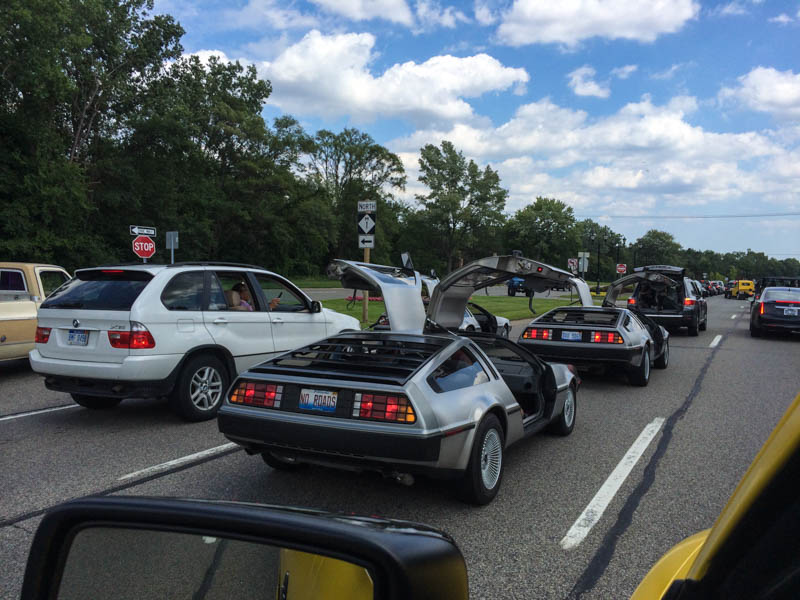 We ran into a group of DeLoreans that appeared to be filming a documentary or other form of video from a camera car. They were driving with their doors open, and it’s a sight to see when they are coming up from behind four-wide.