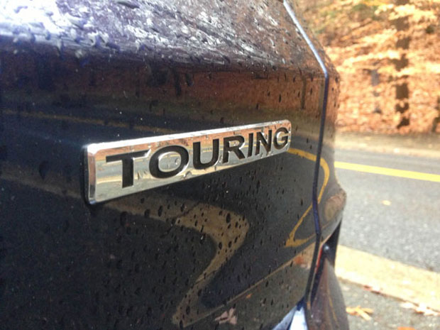 This top of the line Touring model includes leather trimmed seats, multifunctional leather wrapped steering wheel, heated front seats, cruise control, Bluetooth, iPod connectivity, push button start, and a power sunroof. The materials used in the cabin still feature a fair amount of plastic, but everything is thoughtfully placed. There are no redundant controls on the dash; the only radio controls are on the steering wheel or on the 7″ touchscreen. There is a fair amount of storage in center console and deck, a very convenient place for your phone, and some storage in the doors.