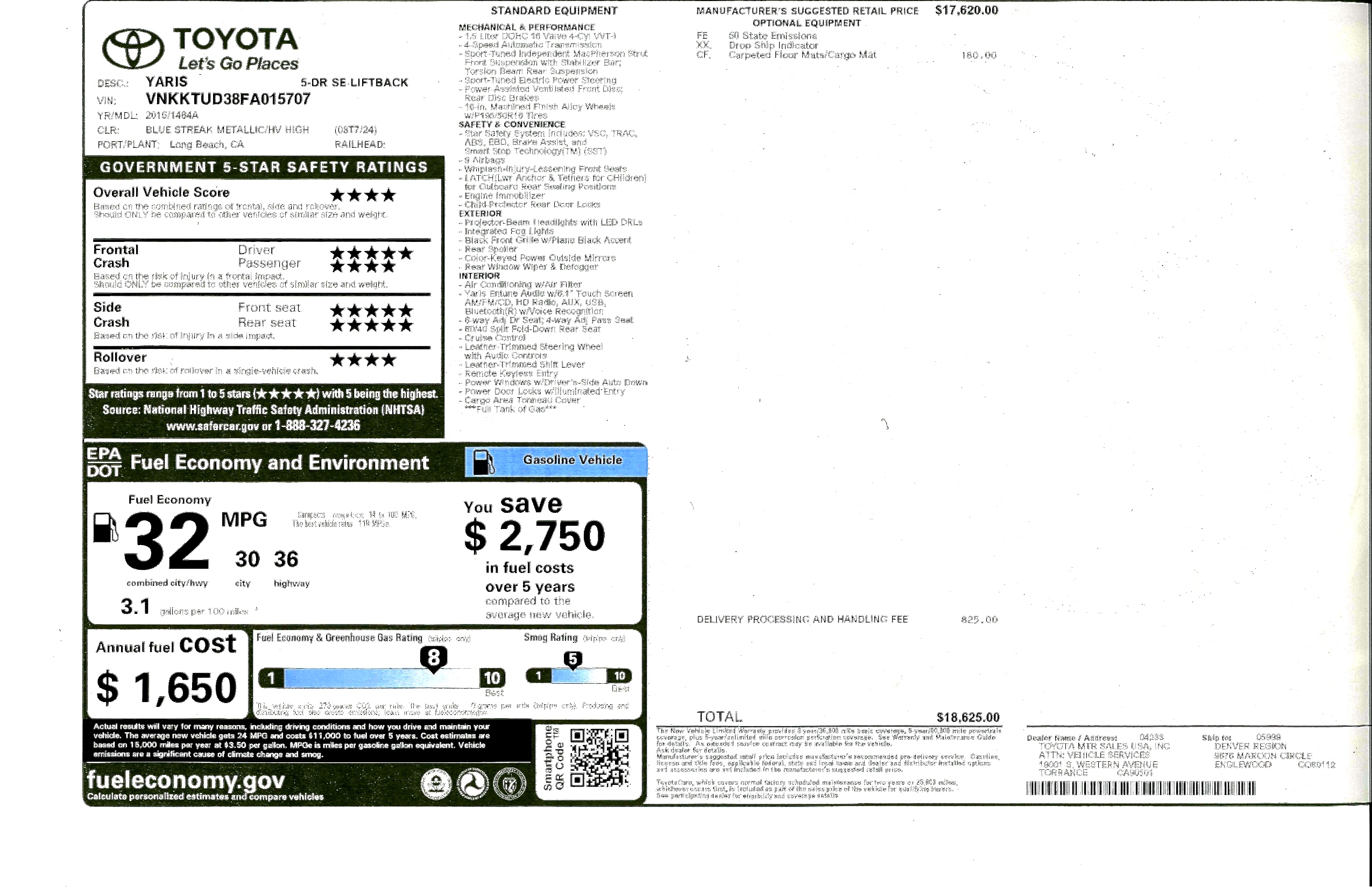Our 2015 Yaris SE had an MSRP of $18,625.00 as tested, putting it at the premium end of the entry-level subcompact spectrum. Still, with an extensive standard feature list and excellent driving dynamics, the 2015 Yaris is definitely worth a look.