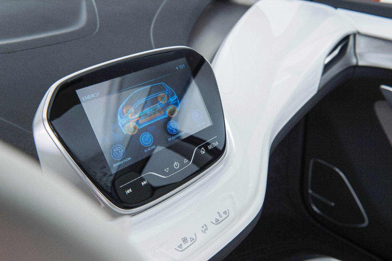 A large, color 10-inch-diagonal capacitive-touch screen, with interface features, complements the concept Chevy Bolt EV Connect app. It even allows the projection of all the application and other smartphone data onto the screen.