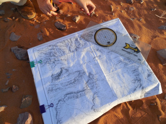 Participants in the Gazelle Rally are not allowed chase crews, cell phones, or GPS. Points are awarded for shortest distance between checkpoints, not fastest time. Teams can choose their route with the help of an old map, a plotter, and a compass. There is no roadbook. Teams are given map coordinates and must plot them on their maps, find their heading, then drive in as straight a line as possible. If a team comes upon an obstacle, be it a wash or a mountain, they must navigate around it and then return to their original heading.