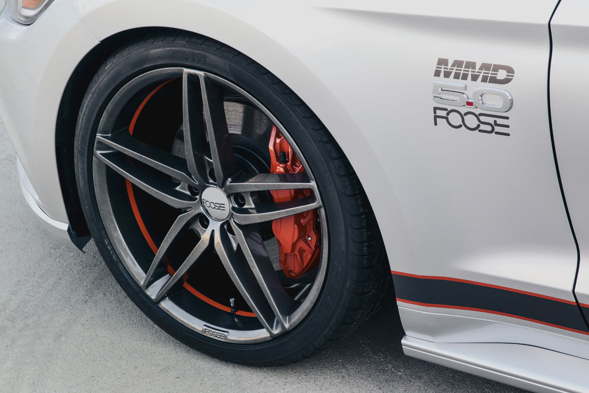 The unique visual styling designed by Foose accentuates the new Mustang body style and gives it an aggressive appearance. Exterior and interior styling by Foose and MMD make this one-off Mustang a collector’s item. Visual enhancements installed on this 2015 Mustang include: