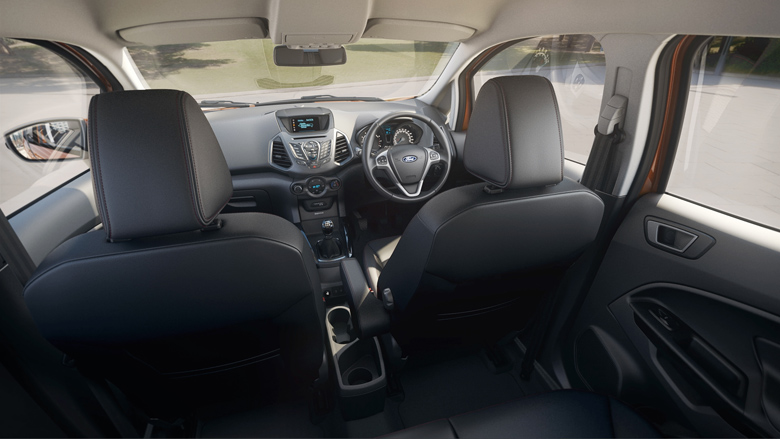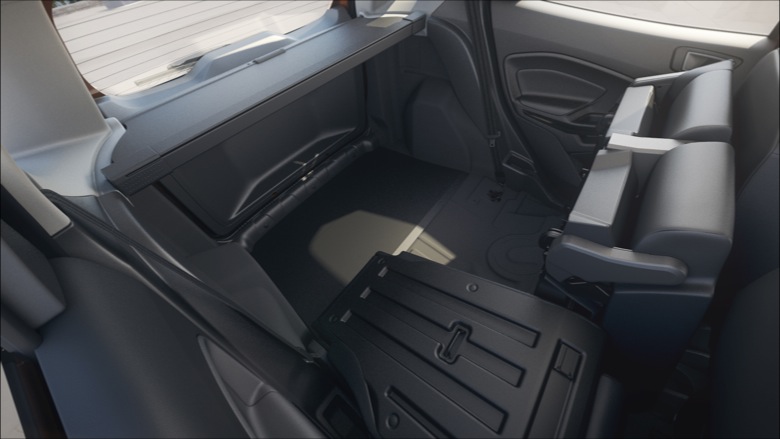 The European EcoSport has a tumbling rear seat for versatile cargo management. It also has room for five. It’s peculiar that the EcoSport test vehicle that was caught high in the Colorado Rocky Mountains is parked next to a Jeep Renegade.