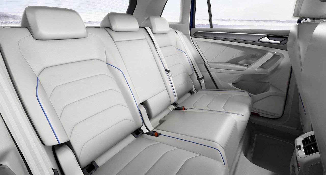The new Tiguan increases interior volume for passengers and cargo. The trunk area increases to 18.5 cu-ft with the seats in place, and to 58.5 cu-ft with the rear seats folded. Rear passengers will be able to enjoy 1.1-inches more of knee room.