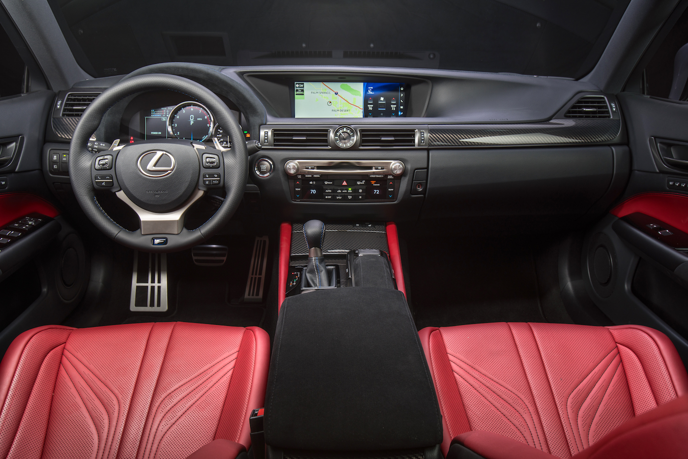 Traditionally, the coupe version of a performance sedan is more focused on the track experience and also costs more. This is not the case with the GS F. The sports sedan stickers $7,700 over a comparably equipped RC F coupe. The GS F is nearly an all inclusive proposition. You get all the goodies standard. The only notable option is the Mark Levinson audio system.
