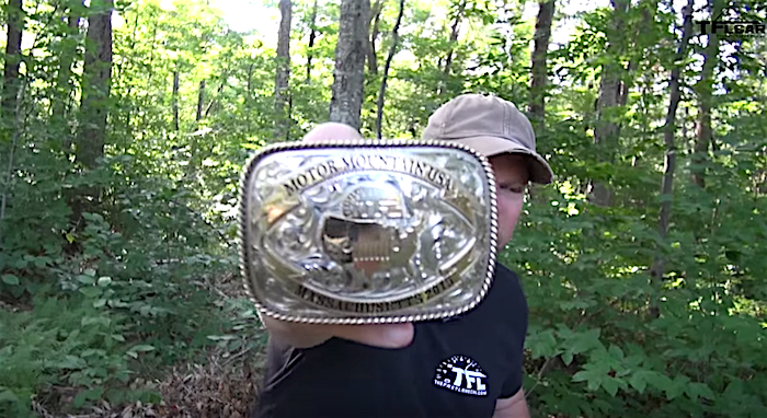 The Massachusetts belt buckle is hidden on the way up to the Mt Greylock summit. Watch the episode below to see the whole adventure and the precise location of the buckle.