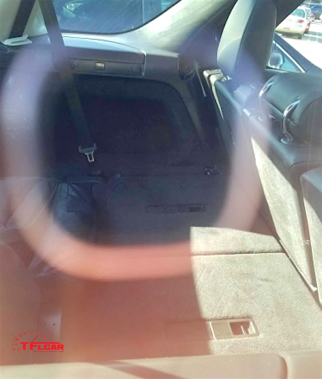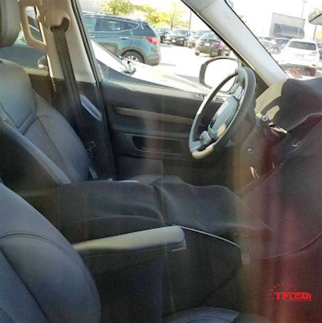 Check out these interior shots that Kendra managed to get. The dash and the center console are carefully covered, but the folded third-row seats are visible in the back.