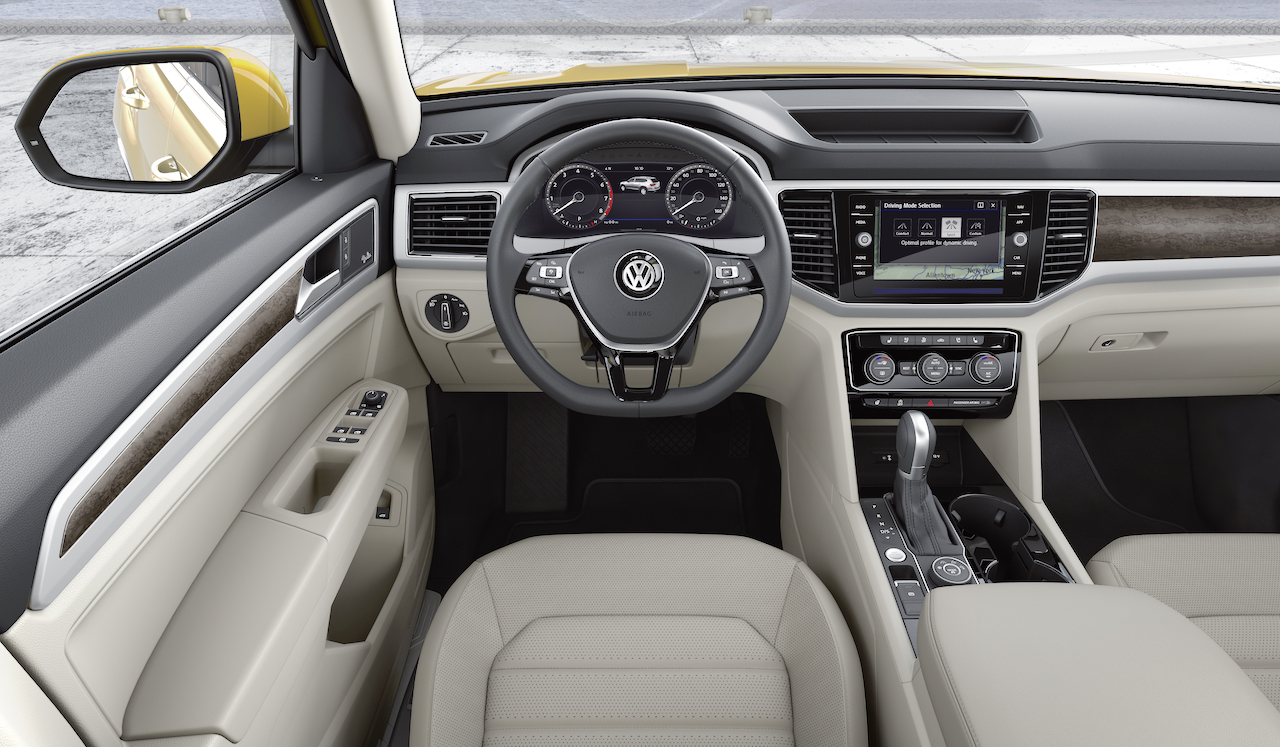If you have been in a Volkswagen recently, then the interior will feel very familiar. The Atlas is packed full of latest driver assistance and technology features. It will have an available Adaptive Cruise Control (ACC) system, autonomous emergency braking, Lane Assist, and Parking Steering Assistant. A new 12-speaker and 480-watt Fender Premium Audio system will also be available.