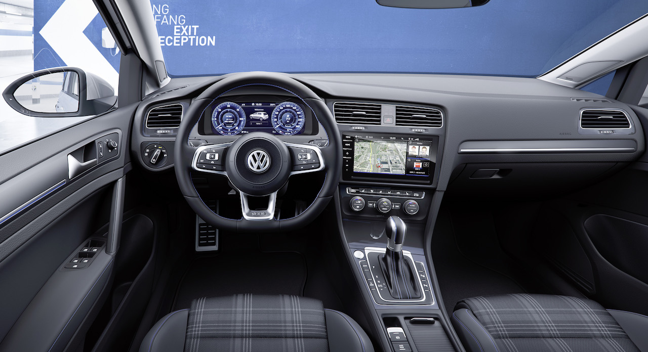 However, the big news are the new “Discover Pro” gesture controlled infotainment system and new driver assistance features. For starters, the Golf can be optioned with all digital 12.3-inch color display gauge cluster (resolution: 1,440 x 540 pixels), that Volkswagen calls “Active Info Display”. This is similar to the gauge cluster you may have seen in the new Audi vehicles. The driver can switch between different display themes, that includes a Navigation mode.