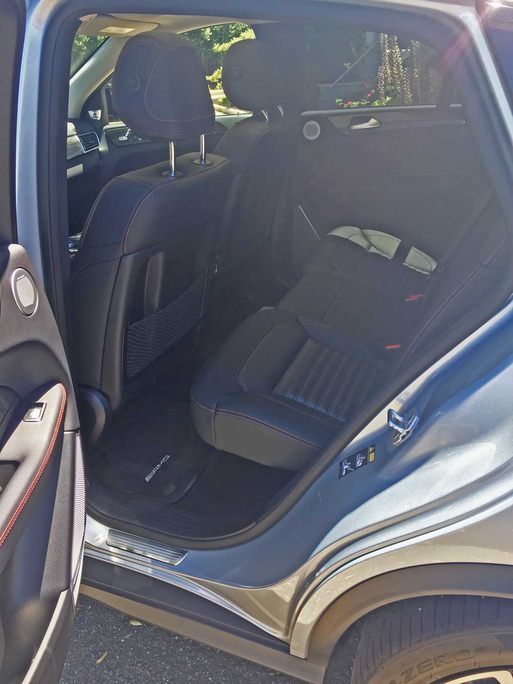 Outward vision forward for the driver is virtually the same as the boxier version GLE. The rearward view is another story – here the blind-spot monitor ally comes in handy, due to the narrow windows and wide roof pillars. Headroom in the back seat is also reduced, but only minimally.