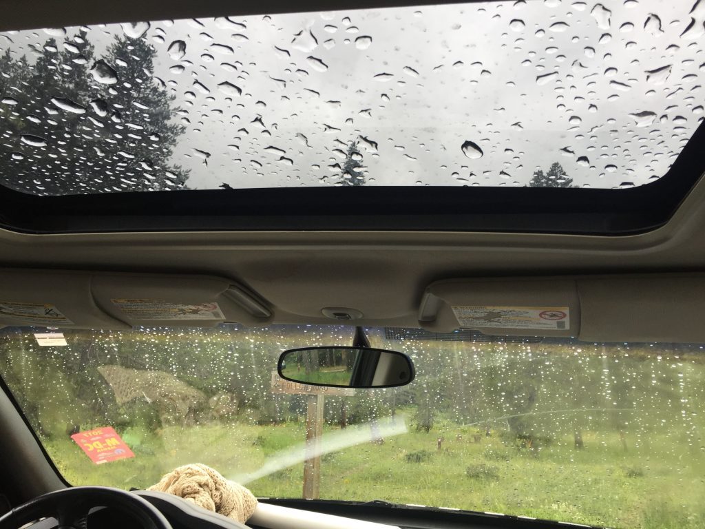 The only misfortune to befall us on our trip was that the usual Colorado mountain afternoon thunderstorm turned into an all-evening affair. We spent a good few hours cracking up over a game of Cards Against Humanity nice and dry in the back of this thing.