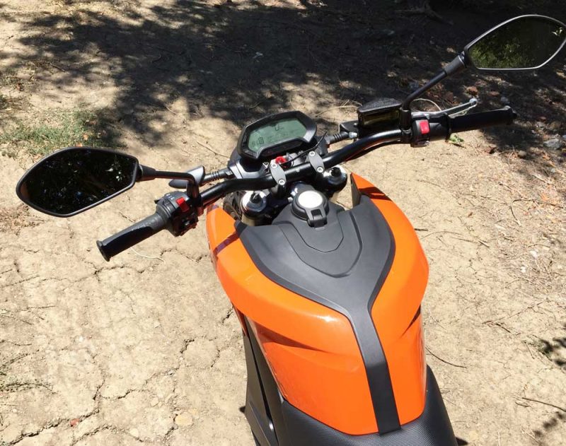 My test 2017 Zero DS ZF6.5 was outfitted with the Charge Tank, accessory with J1772 compatability and was finished in Orange and Black, looking a lot like a KTM off-road bike. The base sticker was set at $10, 995., while the estimated as tested price came to $13,440. *MSRP does not include shipping, applicable taxes, PDI, registration or dealer installation of optional accessories. Government incentives may apply. Dealer prep may add to cost and can vary.