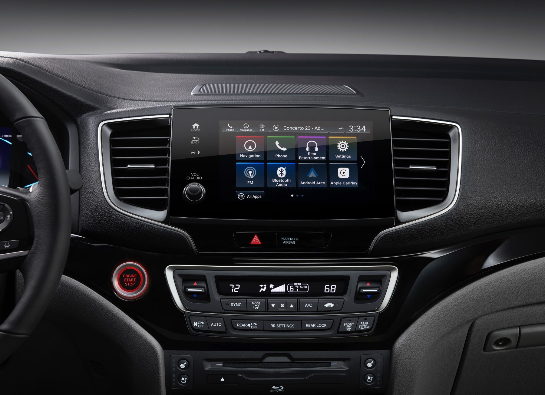 A redesigned instrument cluster serves up a larger thin-film transistor (TFT) screen with a variety of user-selectable displays with driver-selectable customizable features, such as audio system information, a detailed trip computer, phone information, and turn-by-turn route guidance on navigation-equipped models. Drivers negotiate the new TFT menu via a new steering wheel with enhanced controls, redesigned for more intuitive operation. Rear seat occupants benefit from an available updated Rear Entertainment System) with a larger screen and new capabilities. Pilot is now also available with a 4G LTE-based Wi-Fi hotspot.