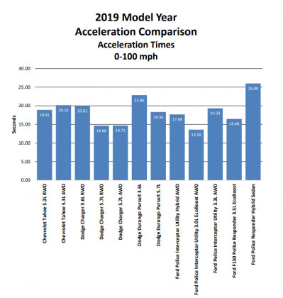 So, there you have it. The 2020 Ford Police Interceptor Utility is the fastest police car, according to this testing. Dodge comes in second with the Charger Pursuit, with the heaviest Chevy Tahoe PPV rounding out the Big Three.