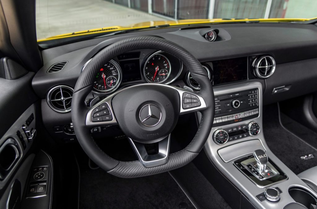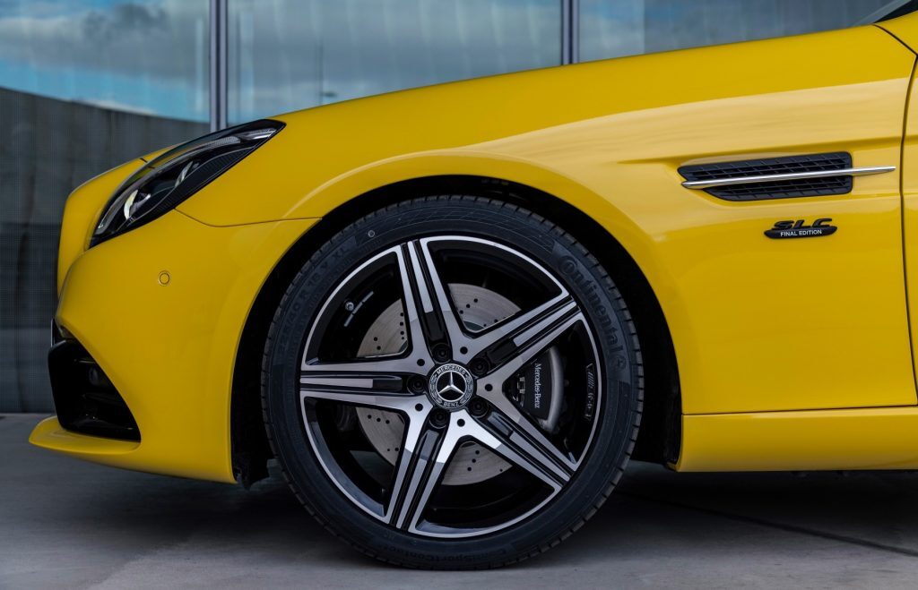 Mercedes based the SLC 300 Final Edition model on its AMG Line package, which includes those AMG wheels, AMG bumpers front and rear, and a 10 millimeter drop from the standard SLC.