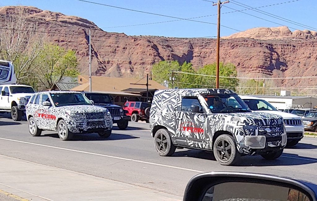 Land Rover announced that the all-new 2020 Defender 4×4 SUV will make its debut in 2019 and go on sale in 2020. They also said that prototypes of the new Defender will “start showing up around the country”. Indeed! Recently we had reports of new Defender SUVs in Wyoming, and now – a TFLtruck viewer captured two prototypes in Moab, Utah.