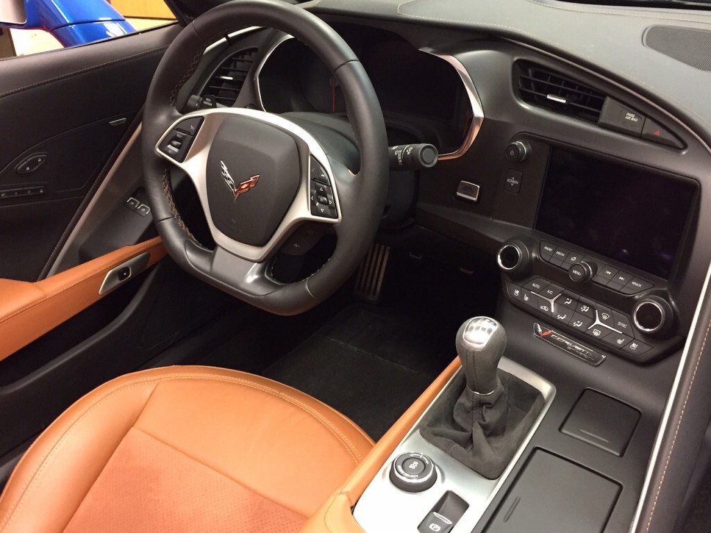 Chevrolet did square off the steering wheel at the top as well as the bottom, and added a center stripe for good measure. The cruise control buttons, voice command and menu selection buttons remain more or less where they were in the old Corvette, although they are laid out a bit differently (old C7 interior below for comparison).