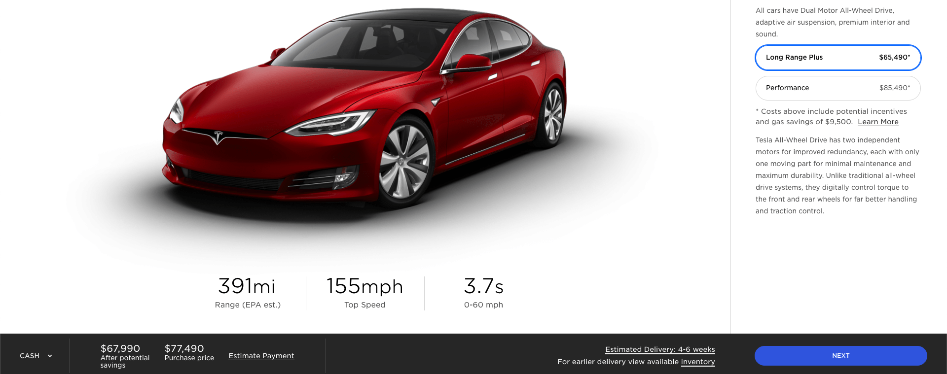 Taking a look at Tesla’s most popular car, the Model 3’s price now starts $2,000 cheaper than before. The rear-wheel drive Standard Range Plus model (which is the base version you arrive on using Tesla’s configurator) starts at $37,990 as far as a cash price goes. Tesla will then advertise a price “after potential savings”, which can lower the actual price of the car to under $30,000 once you factor in federal and state tax credits.