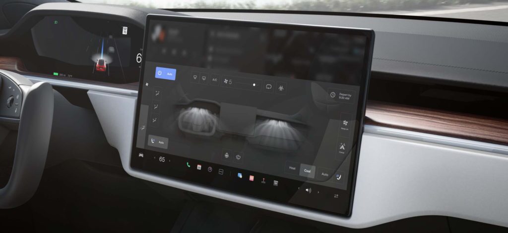 Headline interior changes include an updated 17-inch infotainment screen driven by substantially more powerful hardware allowing movies and video games to play at 60 frames per second (with another screen in the rear), steering “yoke” (replacing the standard wheel), a new 22-speaker premium audio system with over-the-air update capability and a diffused HVAC system that eschews traditional vents, offering a much cleaner interior look.