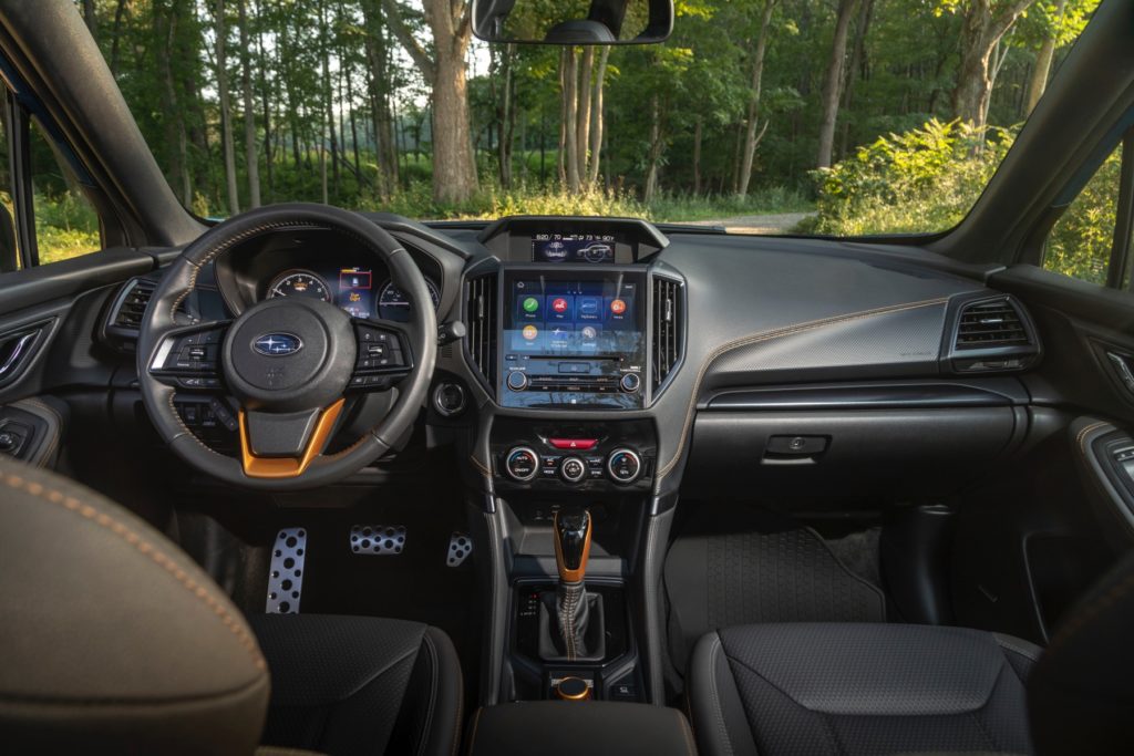 While the base 2022 Subaru Forester starts off at $26,320 including destination, the Wilderness sits right in the middle of the range at $33,945. The more rugged version bumps up the car’s ground clearance to 9.2 inches, and adds in exclusive Yokohama Geolandar all-terrain tires, standard X-Mode and a host of unique exterior and interior touches, à la Outback Wilderness. In addition to the half-inch clearance improvement, the Forester Wilderness sits 1.4 inches taller than a standard model. All your important off-road angles, from approach (23.5 degrees) to breakover (21.0 degrees) and departure (25.4 degrees) all improve as well.