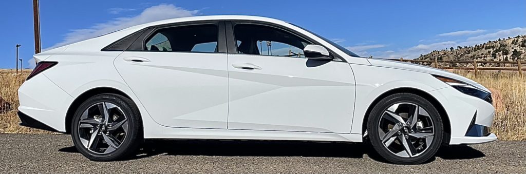 The 2022 Hyundai Elantra Hybrid “Blue” has a base price of $23,750. It’s not only the value leader in the lineup, but it gets better mpg as well. The “Blue” is rated at 54 mpg combined. Once you add on heavier goodies and different tires, it drops a bit to 50 mpg combined. The fully loaded model we tested is the “Limited,” and it’s the only other Elantra trim available. The Limited’s MSRP is $28,250 – but it comes with a ton of options. I think it’s a good deal, considering the content.