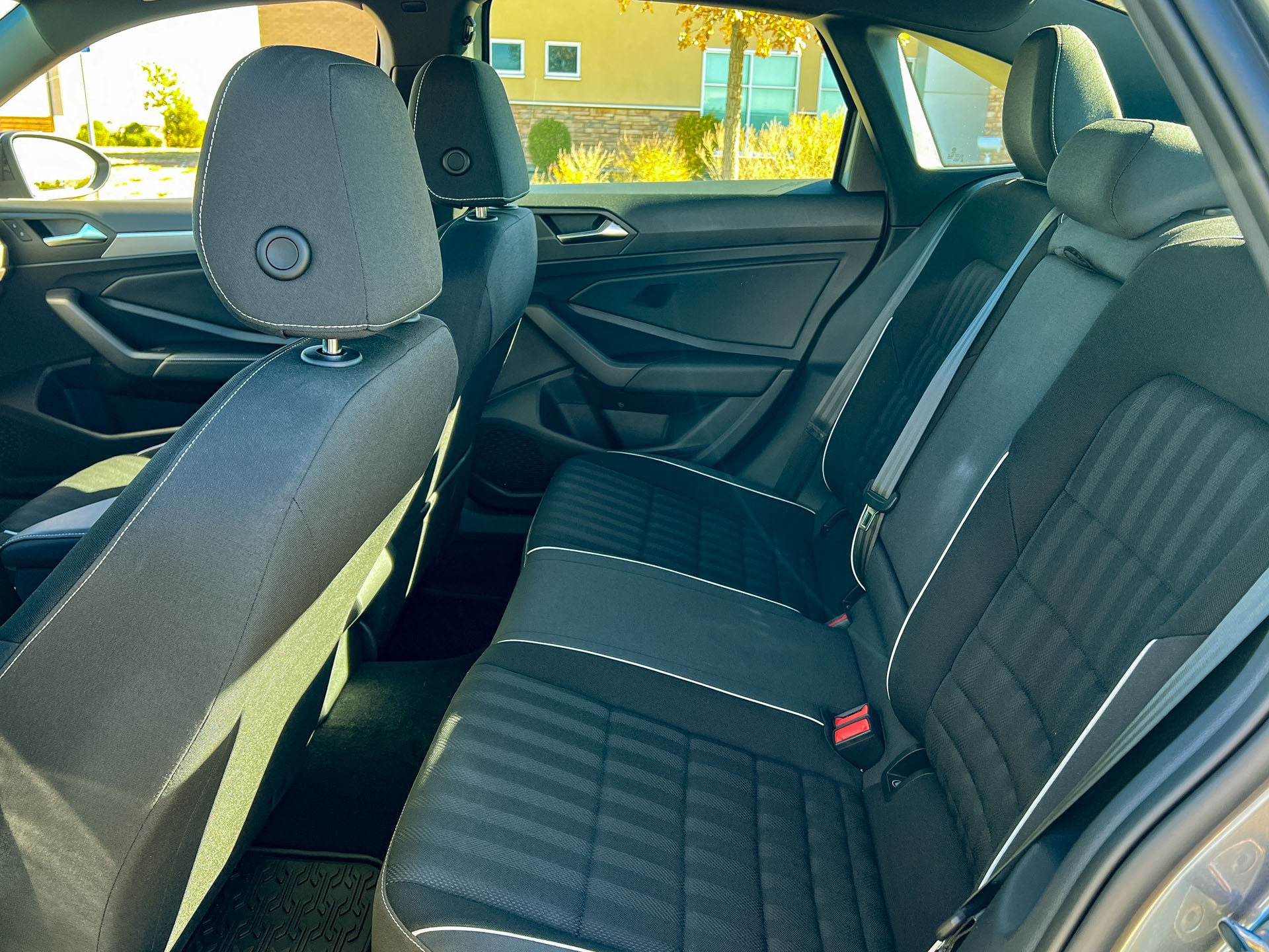 One additional upgrade over the base Jetta S is the addition of “sports comfort seats” for the front passengers. Sure, they look a bit better with contrast piping and they’re soft enough with decent thigh support. But — and I know this is an extremely first-world complaint — they lack any lumbar adjustment. It’s one of those features you may not realize you want until you have to go without it, but because of that omission I ended up with major backache after a couple hours’ driving. So, for those keeping score, they’re not exceptionally comfortable and they’re not particularly sporty either, as they aren’t heavily bolstered to hold you in place through the corners.