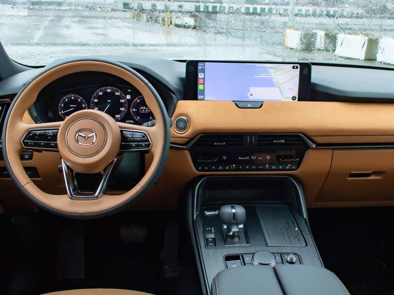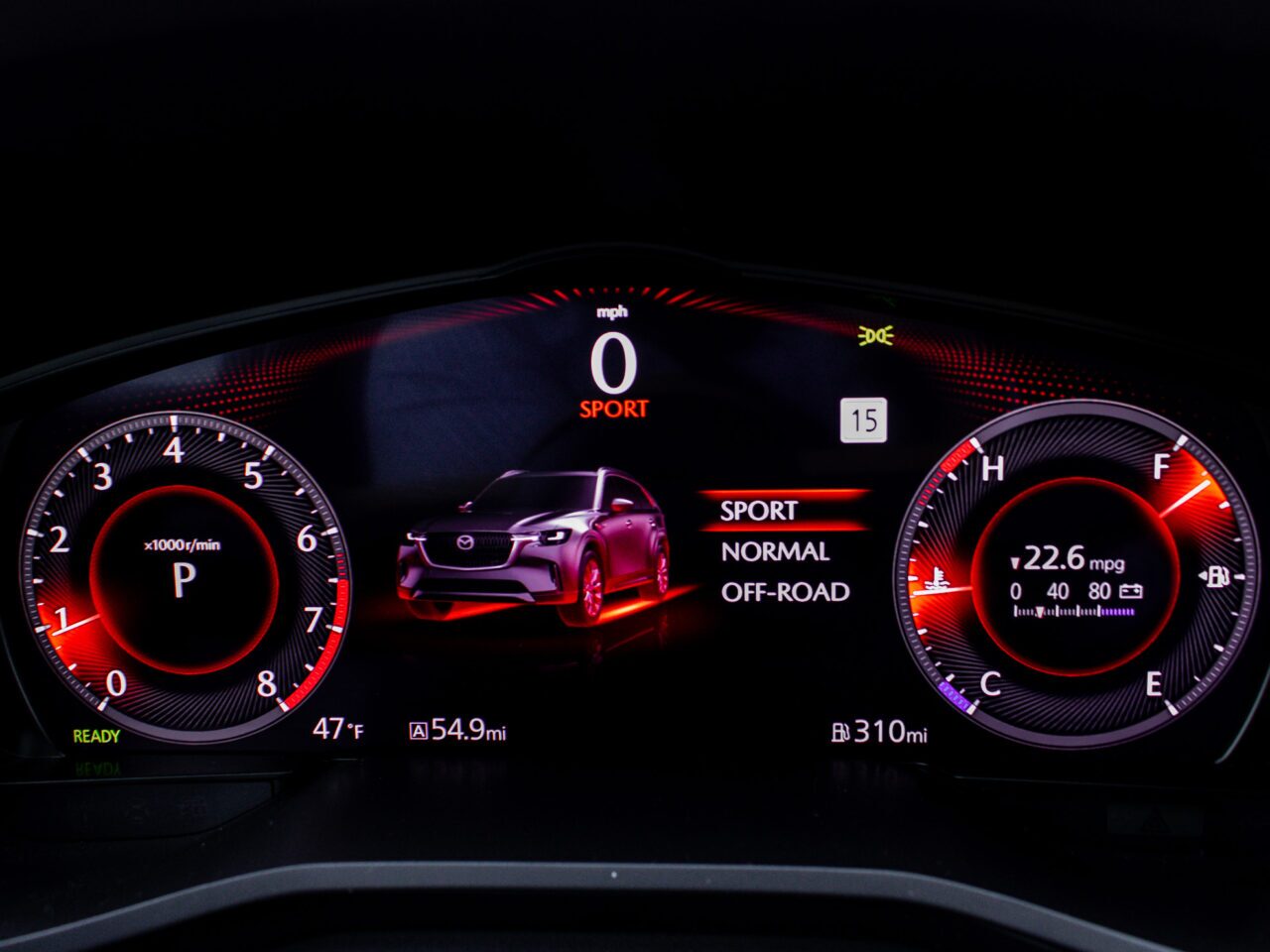 You would expect the 2024 Mazda CX-90 to be pretty nice at the top end, but the automaker has seriously upped its game this time around. The Turbo S Premium Plus is nothing short of fantastic inside, especially with the two-tone black and tan arrangement we tested out. On the higher trims, you also get a 12.3-inch infotainment display and a 12.3-inch digital gauge cluster. Lesser models, for their part, get a 10.3-inch infotainment screen and a 7.0-inch gauge cluster complementing analog dials. All 2024 Mazda CX-90 models come loaded with driver assistance tech, as well as proper hard button climate controls.
