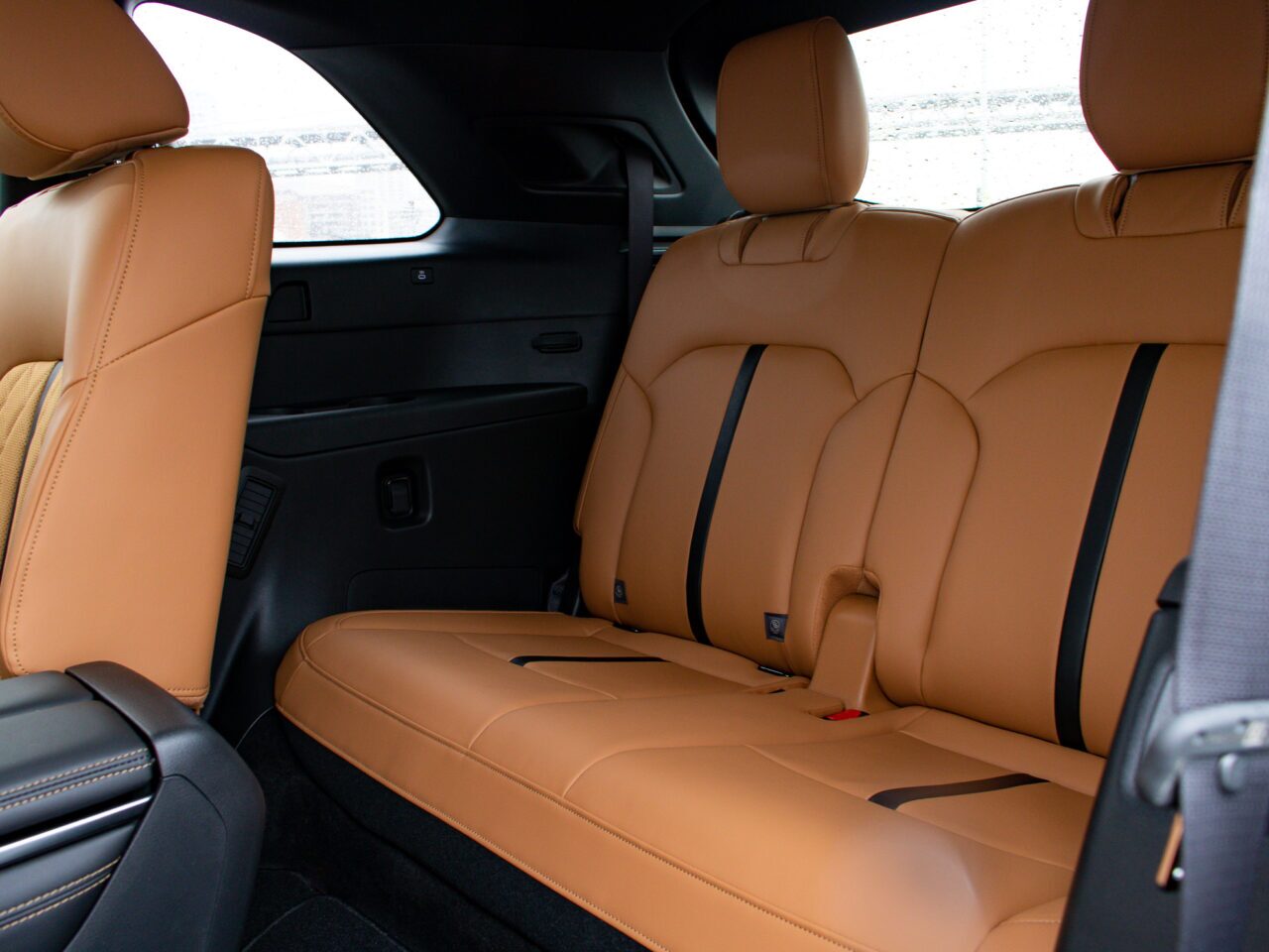 Depending on which trim you buy, the new CX-90 is available in one of three seating configurations. The higher-end models offer six seats in a 2-2-2 configuration with more space for the third-row passengers. By and large, less expensive variants offer eight-passenger seating (2-3-3 with a second-row bench seat), while a seven-seater (2-2-3) configuration with captain’s chairs is a no-cost option on most trims.