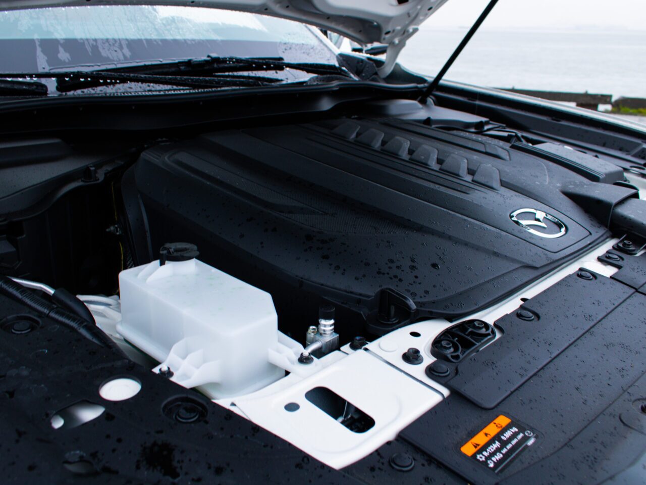 The new six-cylinder makes better power overall and low-speed grunt by way of a 12.0:1 compression ratio (that’s massive for a turbocharged gas engine, and above the old SkyActiv-G’s already high 10.5:1) and a 48-volt mild-hybrid assist system. Mazda’s new turbocharged engine is as smooth as silk in its acceleration with almost no turbo lag, and it delivers a nice little growl to boot.