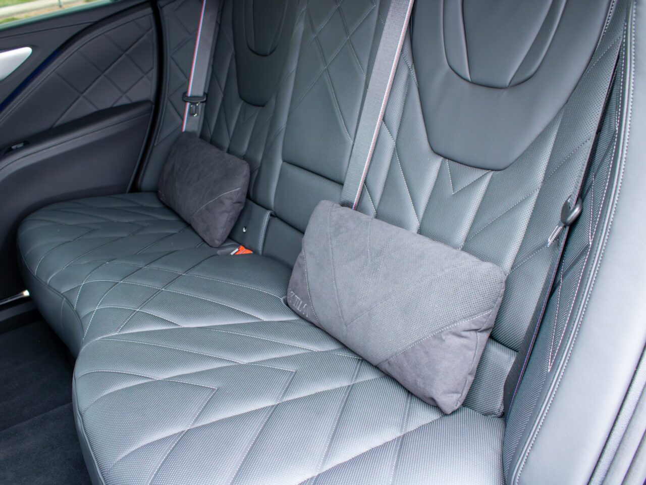 Naturally, multi-zone climate control is part of the XM’s creature comfort list, and you also get wireless charging, temperature-adjustable cupholders, Apple CarPlay and Android Auto capability off the bat. The bolstered front seats are decently comfortable (and are massaging), while the rear seats come with their own pillows and are actually contoured to offer some extra thigh support, rather than just being a straight-across bench. The lumbar pillots are a nice touch, as well.