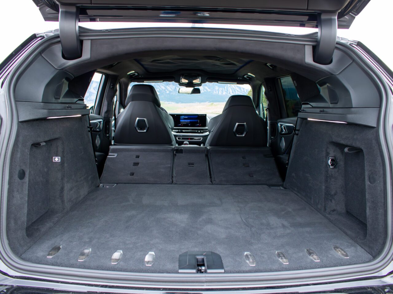 I’ll admit to scratching my head and having a bit of a WTF moment when I saw the first official photos of BMW’s new flagship SUV. Get it in the right color scheme like this Black Sapphire Metallic example, though, and it makes a little more sense. It looks much more sinister, especially at the back with the slim taillights and quad exhaust pipes. I know some of you guys are grimacing and saying, “but that face” out loud (and I hear you), but trust me: This car makes a lot more sense once you take it all in and actually take in the full experience.