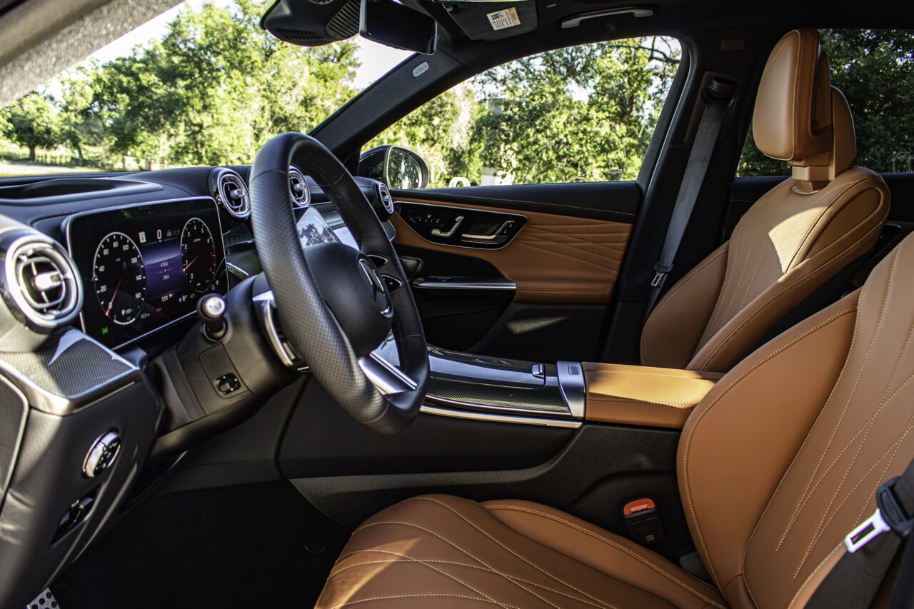 Under the hood, the 2024 Mercedes-Benz GLC300 packs a 2.0-liter engine with a 48-volt mild-hybrid system. This new model manages 258 horsepower and 295 lb-ft of torque, which is a modest 3 hp and 22 lb-ft improvement over the outgoing four-pot. Not huge numbers on paper, I’ll admit, but the new GLC is tuned to make decent use of that grunt as it makes its way through the 9-speed automatic transmission toward the rear or all four wheels.
