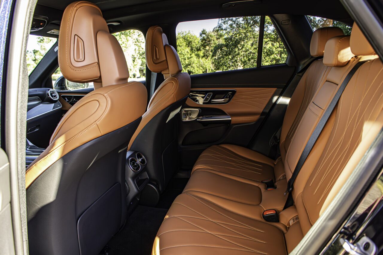 Overall, the 2023 Mercedes-Benz GLC300 is 2.5 inches longer than the last-generation model. Most of that space translates to the cargo area, since the new car measures out to 21.9 cubic feet of space with the seats up. Fold the second row down, and that volume increases to a respectable 59.3 cubic feet. You even get a spare tire under the cargo floor, which is nice to have, and something that a growing number of luxury models lack.