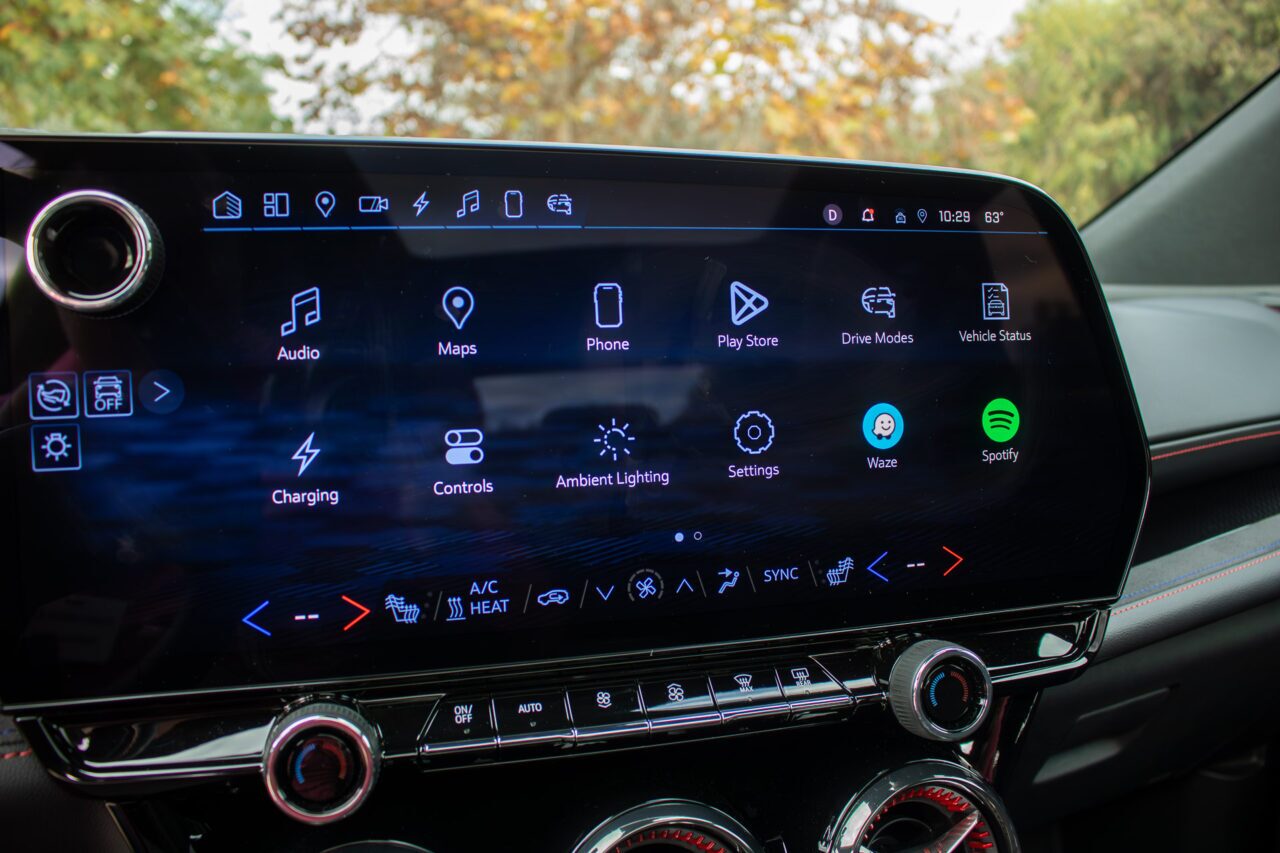 Once you get inside, though, it’s an almost entirely pleasant experience. Chevrolet decided to fit the Blazer EV with a standard 11-inch digital instrument cluster and 17.7-inch infotainment screen, both of which look great and offer a wide range of useful information. Unlike some other EVs, too, you still get a decent range of hard buttons for the major controls, including a volume knob. You also get wireless charging and Google Built-in apps, though you don’t get Apple CarPlay or Android Auto. GM says it can deliver a more curated experience by bringing its own infotainment system to the party (that includes baking in popular apps like Google Maps, Waze and Spotify), but the Blazer EV is one of the first vehicles to see the effects of GM’s highly publicized and contentious decision.
