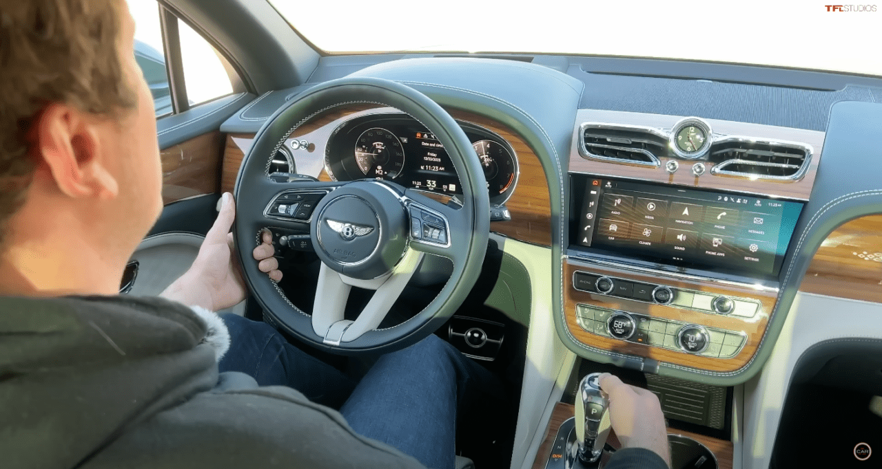 Bespoke luxury is a Bentley hallmark, and when you slide into this cabin, you can actually feel it. The giant rear doors look heavy, and they are. But don’t sweat it; they close shut at the push of a button. The optional $12,000 airline seats slide forward to make more room to lean back to 40 degrees. At the same time, the passenger seat slides forward to maintain legroom. And yes, it happens at the push of a button on the rear passengers’ touchscreen. These features are also where most of the extra costs come into play.