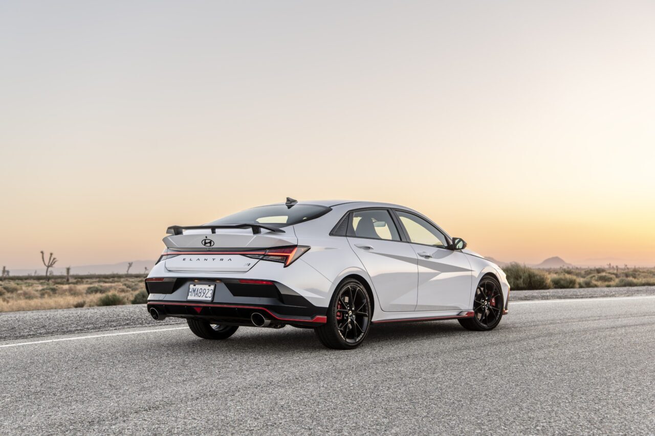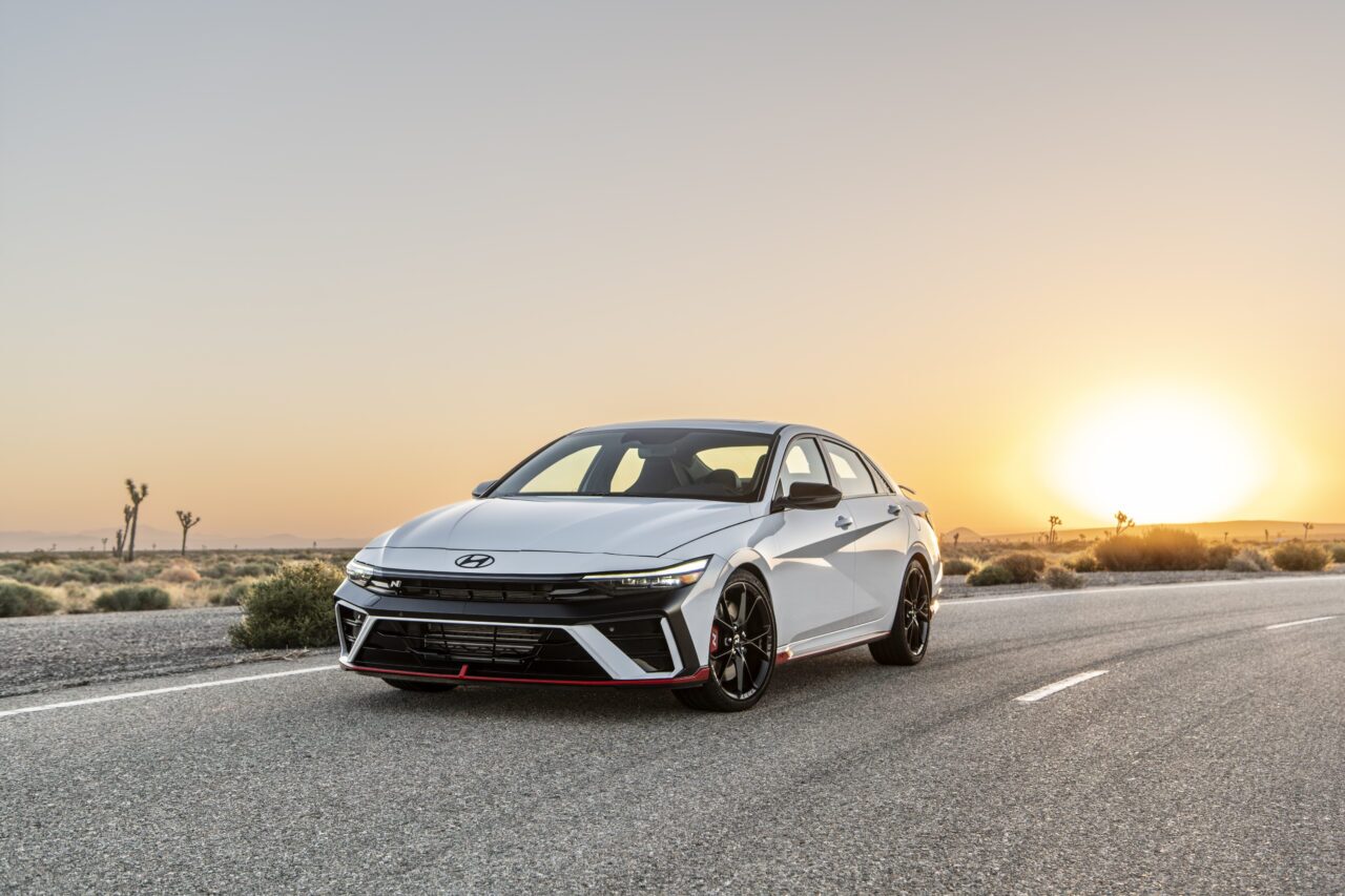 Just as before, the 2024 Elantra N makes 276 horsepower and 289 lb-ft of torque from a turbocharged 2.0 liter four-cylinder engine. Either a 6-speed manual or an 8-speed DCT sends power to the front wheels only using an electronic limited slip differential.