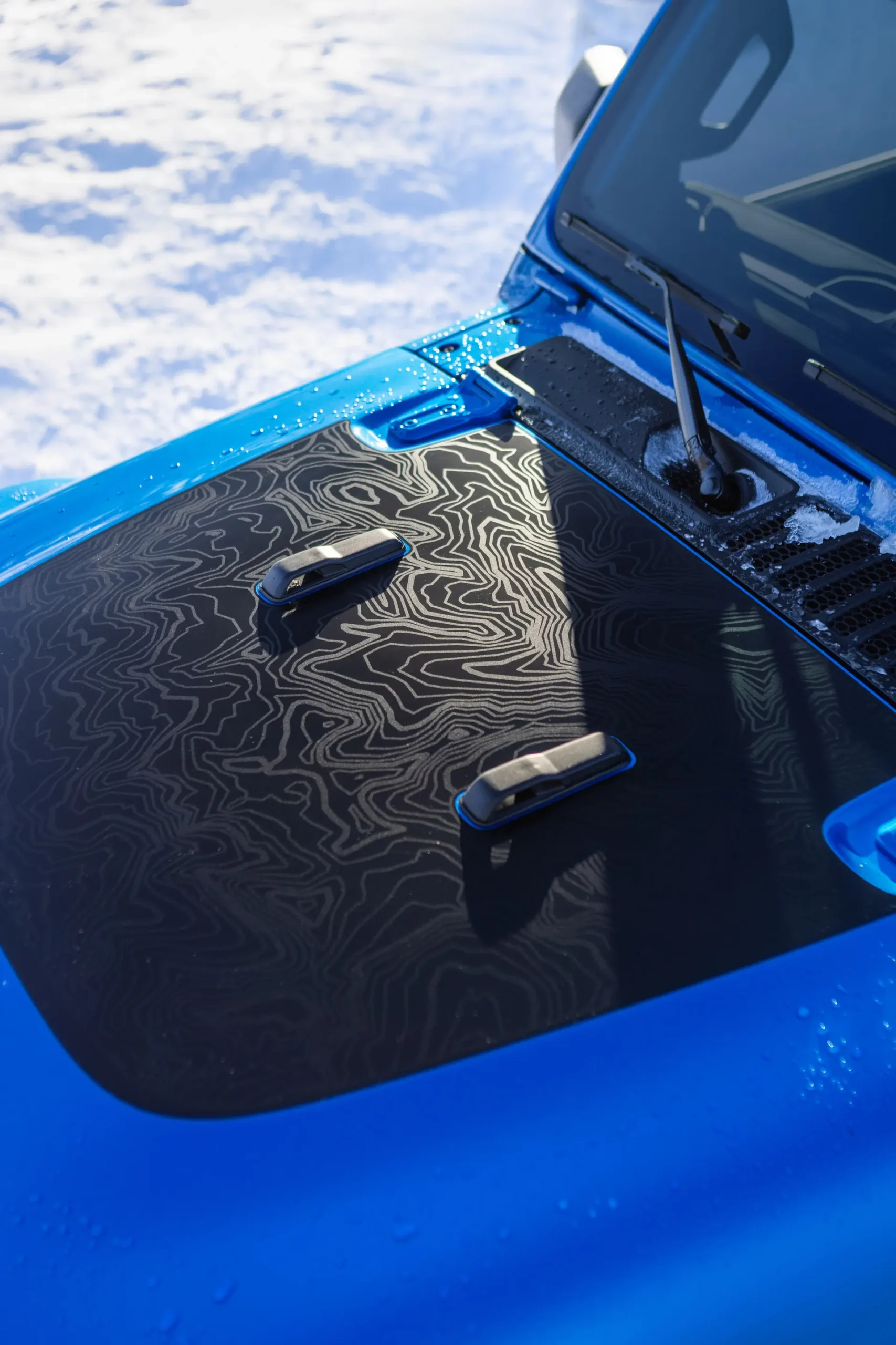 Finally, the 2025 Jeep Wrangler 4xe Backcountry roads out the added feature list with a three-piece body-color hardtop and Mopar all-weather floor mats. It also sports unique hood, fender and rear swing gate decals, but you don’t get a special “Backcountry” decal along the left and right edges of the hood, as you would with a Willys and Rubicon. In fact, the Backcountry does still have a Sahara 4xe badge on the back, signaling Jeep’s pitch for this model as more of a built-up Sahara than a completely different trim.