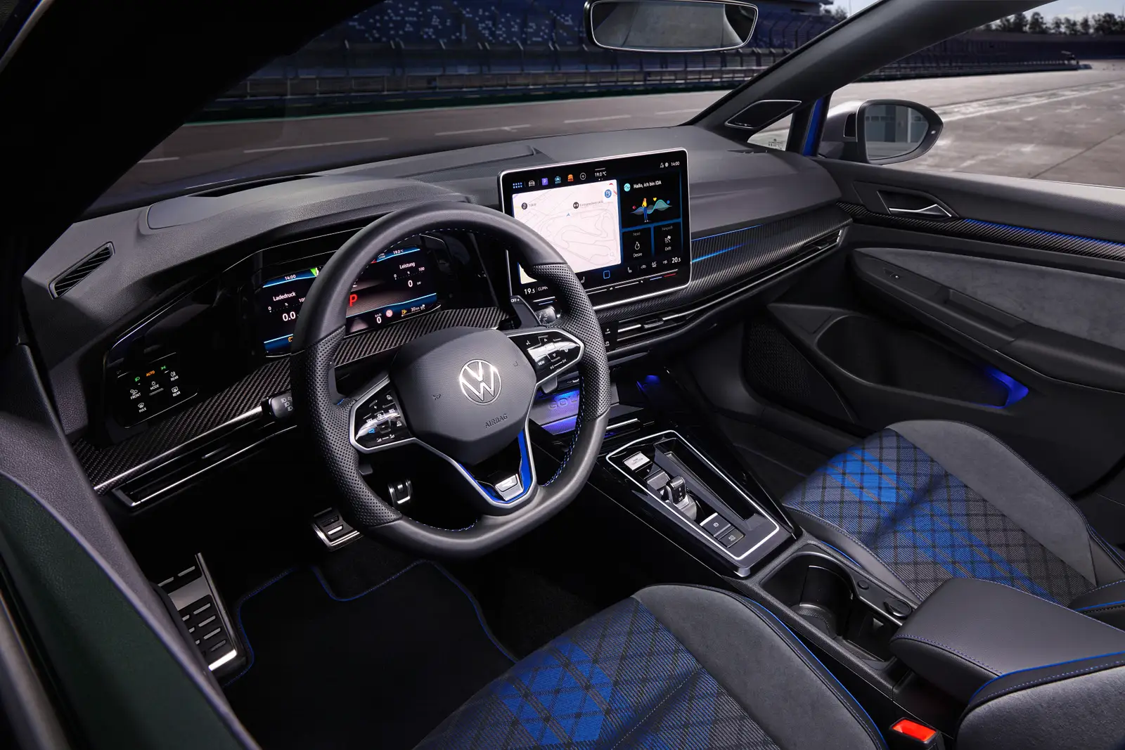 Broadly speaking, the updated Golf R brings the same changes inside and out as its GTI sibling. You get ventilated Nappa leather seats, heated seats all around, and the 15-watt wireless charging pad as standard equipment. The 12.9-inch infotainment screen and all its accoutrements also feature here.