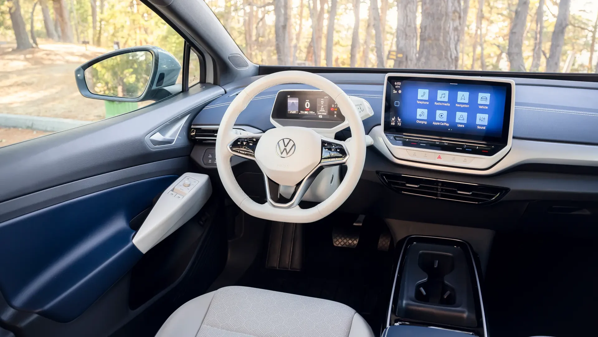 If you want a dual-motor 4Motion model, that will set you back at least $50,420. The AWD Pro models get larger 20-inch wheels as well as a tow hitch to tow up to 2,700 pounds and a heated windshield, while all Pro models bring in features like a 12.9-inch infotainment system, 45-watt USB-C charging dual-zone climate control, and some more cold-weather goodies like heated seats and mirrors. All ID.4 models also get a range of standard driver assist features like Park Distance Control (parking sensors), Park Assist, Dynamic Road Sign Display and Light Assist (high-beam control).