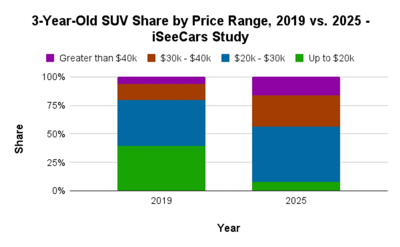 We’re now in the period where trying to find a decent deal on a car built in that pandemic-restricted period is tough, to put it mildly. In analyzing 2.6 million 3-year-old used cars in 2025, research firm iSeeCars determined the average used price jumped a whopping $9,476 from where it was in 2019. In other words, buying a 2022 model vehicle now will set you back an average of $32,635. Back in 2019 (when you’d be looking at a 2016), you’d have to fork over around $23,159.