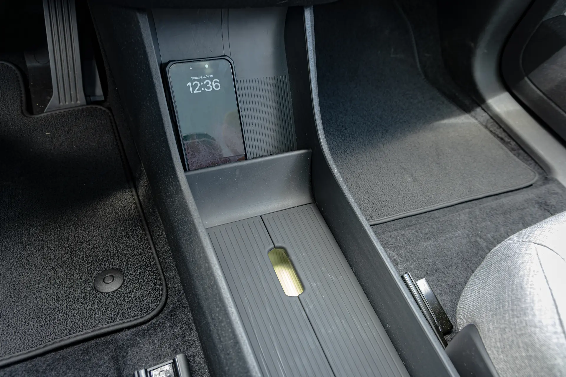 Despite some clever touches, there are areas the Volvo EX30 doesn’t feel quite so premium. The design of the center console is indeed useful, but if you’re not a fan of that sort of cheap-feeling, rubberized plastic, then you’ll have a constant reminder of cost-cutting right there. The door cards are also mostly hard plastic and only have a couple modestly sized storage compartments. No speakers in the front doors, no door controls, and nothing to really make those materials feel like this is the nearly $50,000 car it is. You’ll also get a small reminder with the window switches. You only get two in the center, with a touch-sensitive button to switch between controlling the front windows or the rear windows.