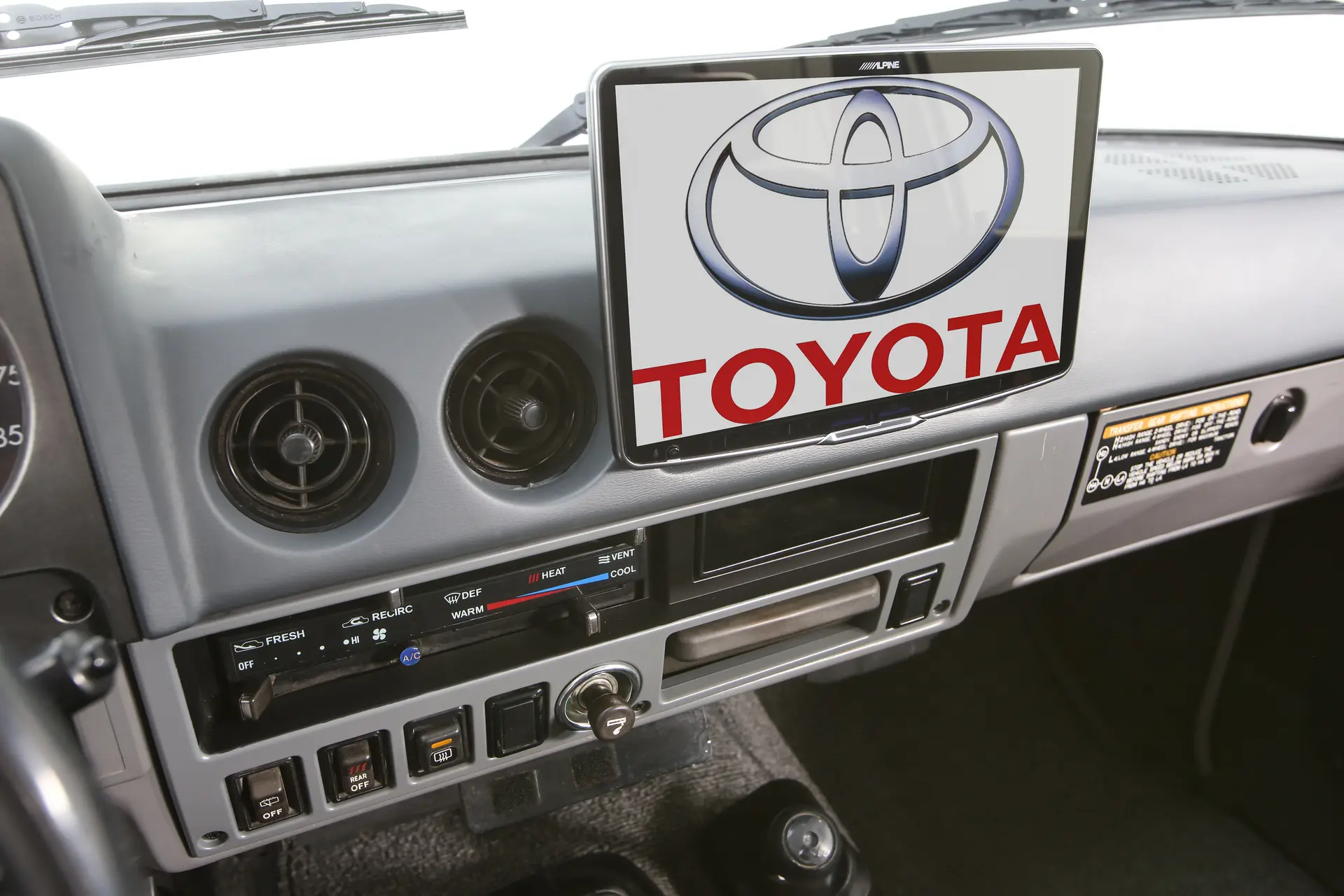 Inside, the Toyota Turbo Trail Cruiser concept looks 95% factory original. The only exception to that is the screen I’m sure your eyes immediately darted toward. Because, of course it needs a touchscreen, doesn’t it? The truck also gets an upgraded JBL sound system, but apart from that Toyota left things well enough alone — so this is still a pretty awesome-looking one-off, if you ask me.