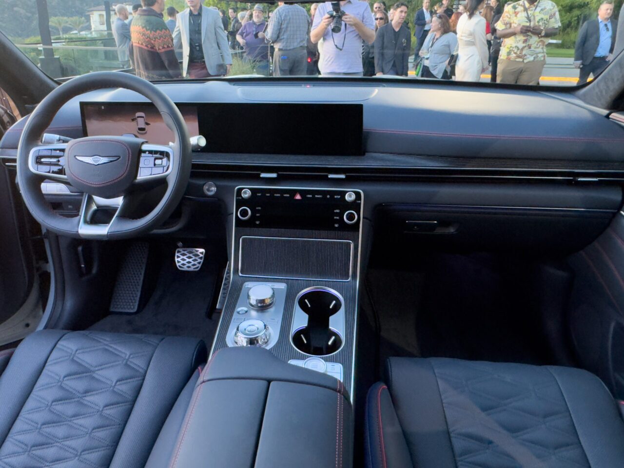 The massive 27.0-inch OLED display dominates the dashboard, technically two screens fused into one seamless panel. Response times are instant, and while the touchscreen works beautifully, Genesis also includes a rotary controller on the center console. Unfortunately, it sits far too close to, and looks nearly identical to, the rotary gear selector. That’s a bummer in an otherwise beautifully executed interior.