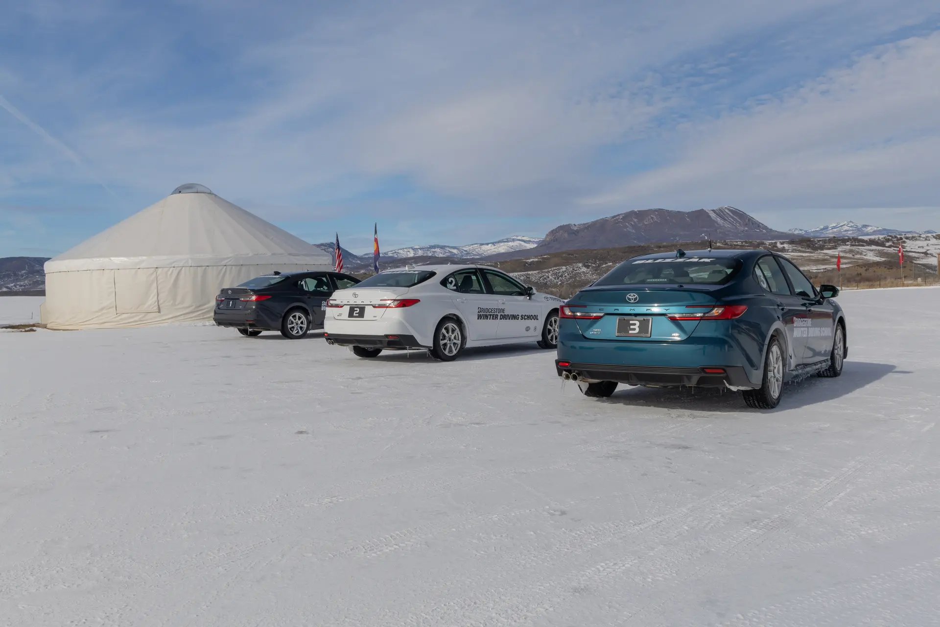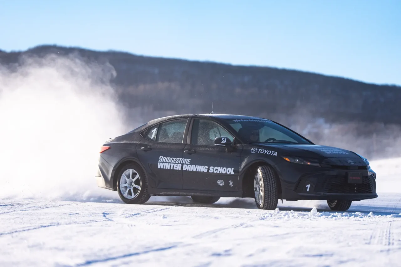 Yet…the Camry equipped with Bridgestone Blizzak IcePeaks perform admirably across the board, in acceleration, cornering and braking. Part of the art and science of driving well on ice comes down to vehicle dynamics and technique (hence the “school” part of Bridgestone Winter Driving School), but the IcePeaks feel like they can bite harder, grip better and safely get you from A to B, even past the DM-V2s or WS90s (which we did try out on the Camry last year, as the baseline for the performance Blizzak 6s).