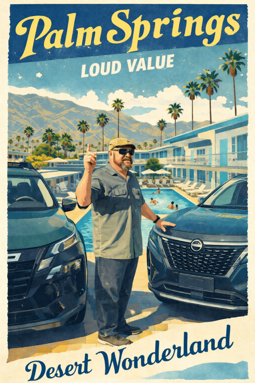 A few months ago, a Nissan executive approached me with an idea: a “Loud Value” trip to Palm Springs, California. The concept was simple- spotlight affordable vehicles on a trip to a destination that’s relatively accessible and reasonably priced. In other words: prove you can still have a good weekend getaway without blowing all your dough.
